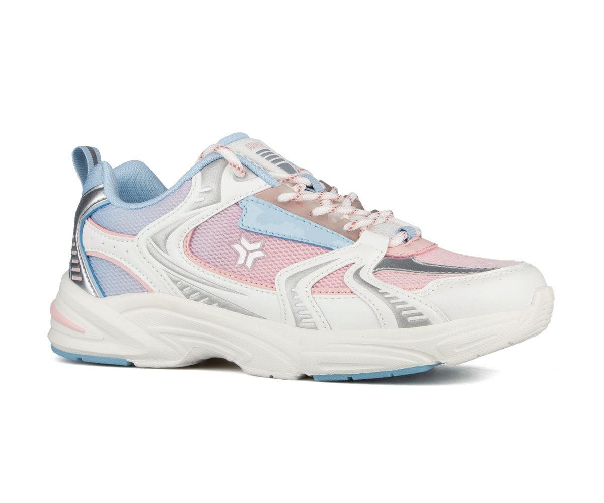 These athletic fashion shoes for junior girls (8 to 14 years old) offer comfort, support, and style for everyday wear and light sports. The synthetic and mesh upper ensures lightness and breathability, while the TPR sole provides grip and durability on various surfaces. The classic lace closure ensures a secure and adjustable fit.